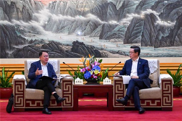 政务司司长陈国基(左)与深圳市市长覃伟中(右)会面。