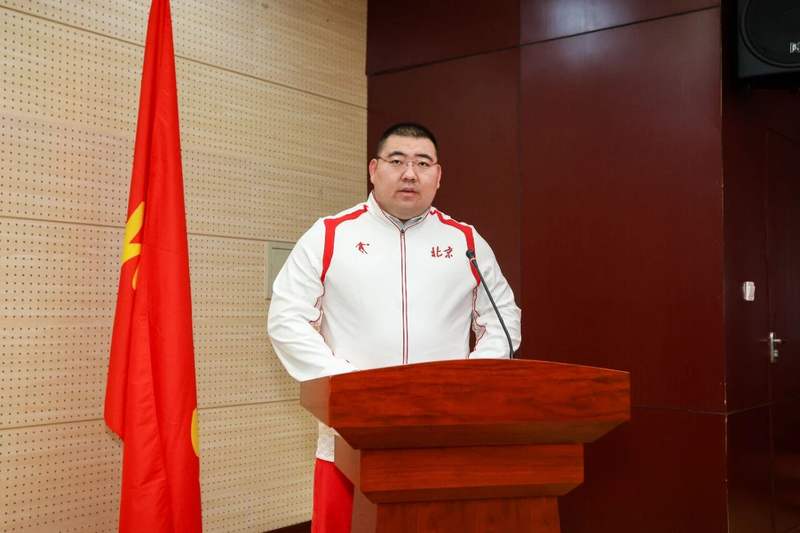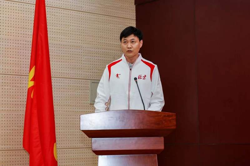 市政府副秘书长王颖捷宣读第十五届全国运动会北京市体育代表团领导成员名单。市体育局党组书记、局长于庆丰通报全运会北京市备战参赛组织情况。举重运动员艾雨南、击剑教练员仲满分别代表出征运动员、教练员发言。