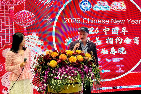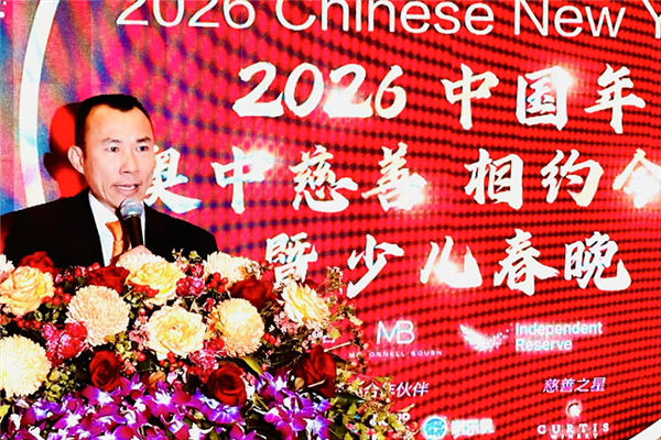 活动上,“澳中慈善 相约今宵中国年暨少儿春晚”组委会主席、澳中慈善基金会主席,阿明少林功夫馆馆长,星梦国际创始人谢雄明主席致欢迎辞。他深情地回顾了基金会近年来在慈善与文化领域的发展。谢主席强调,2026春晚将关注企业出海方向,聚焦中国企业“走出去”的时代浪潮,全面展现中国品牌在全球舞台上崭新的文化自信与创新力量。谢雄明主席宣布,《2026年澳中慈善·相约今宵中国年暨 少儿春晚》由澳中慈善基金会、相约今宵澳洲春晚组委会、澳洲少儿春晚组委会联合主办,2026年2月22日于悉尼市政厅举办。