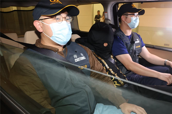 其中一名涉贩毒男子被海关拘捕。香港文汇报记者邝福强摄