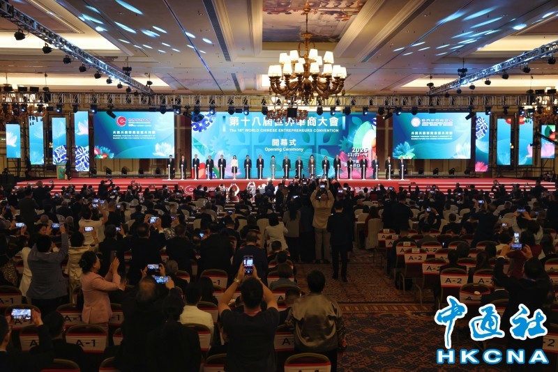11月3日,由澳门中华总商会主办的第十八届世界华商大会在澳门开幕,本届大会主题为“共商共筑华商命运共同体”,旨在强调全球华商团结互助、共同发展的重要理念。(香港中通社记者 谢光磊 摄)