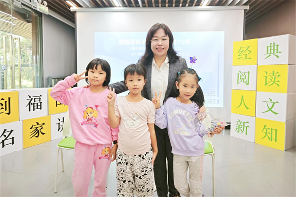 “到福田听名家讲座”活动由深圳市福田区新时代文明实践中心、深圳市福田区图书馆主办,深圳市福田区儿童图书馆香蜜分馆、深圳市福田区艺文儿童文学院承办。当代诗人、评论家周瑟瑟主持了当天的讲座活动。