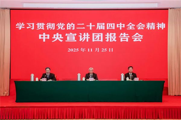 11月25日学习贯彻党的二十届四中全会精神中央宣讲团成员,中国科学院院长、党组书记侯建国,中央财经委员会办公室副主任、中央农村工作领导小组办公室副主任祝卫东在香港向中央驻港机构和中资企业负责人宣讲。中央政府驻港联络办主任周霁主持并讲话。中央政府驻港联络办、驻港国家安全公署、外交部驻港特派员公署、解放军驻港部队及中资企业有关负责人等约450人参加。学习贯彻党的二十届四中全会精神中央宣讲团报告会。