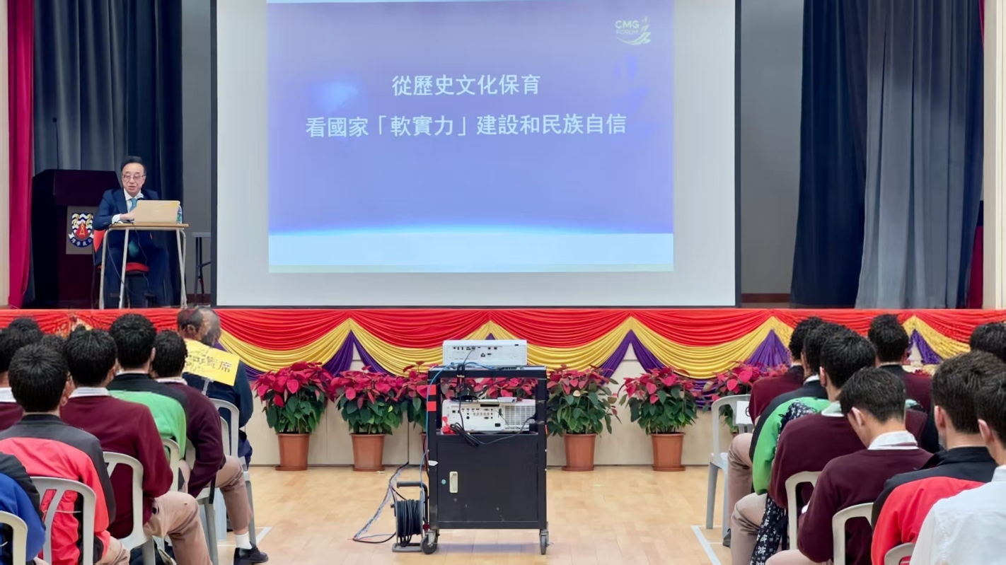 全国政协港澳台侨委员会副主任屠海鸣25日来到位于香港东区的筲箕湾东官立中学,为中五、中六两个年级的300多名学生上课,以《从历史文化保育,看国家“软实力”建设和民族自信》为题进行宣讲。