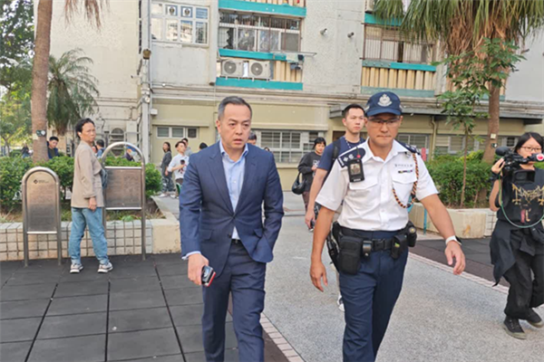 警务处处长周一鸣(左)抵达宏福苑。(香港文汇报记者刘友光摄)