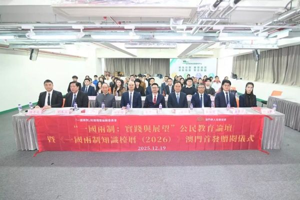 12月19日,“一国两制:实践与展望”公民教育论坛暨2026“一国两制”知识台历(菁华版)澳门首发赠阅仪式在澳门青年发展服务中心举行。新版台历在内容与形式上均作出升级,延续“宣传‘一国两制’制度文化,助力港澳持续繁荣、稳定与发展”的核心理念,深入贯彻中央关于“一国两制”的系列重要论述及二十届四中全会精神。