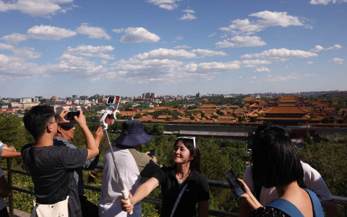 游客登北京景山南望故宫。新京报记者 李木易 摄