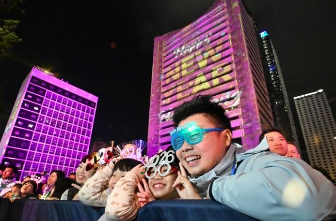 2025年12月31日晚,民众在香港中环迎接2026年的到来。(图源:中新社)