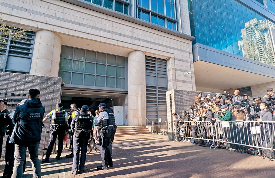 图为黎智英案裁决当日,西九龙裁判法院门外,警方严阵以待。资料图片