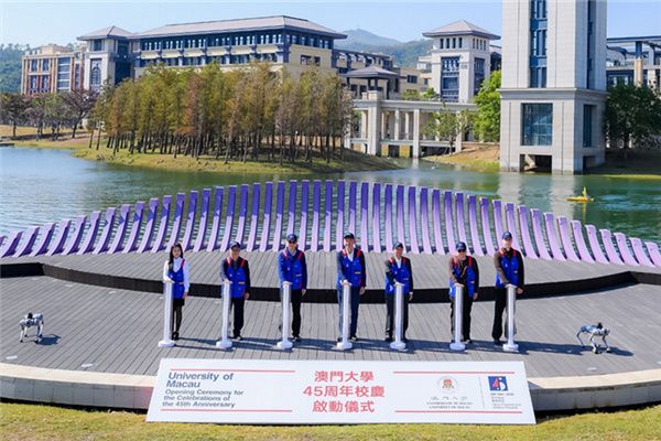 香港新闻社1月12日报道 澳门大学11日举行45周年校庆启动仪式,一众特区政府官员、中央驻澳机构、立法议员、教育界、奖学金捐赠人、合作伙伴,澳大师生、校友等聚首于澳大水剧场,共同为校庆揭开序幕,畅享澳大建校45周年的喜悦。