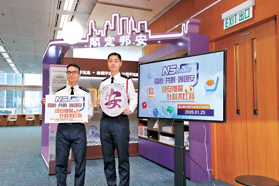 活动方面,警队早前透过设置“NSmart”问答游戏机及“NSpeed”国安快递宣传车,以互动有趣形式增加年轻人对国家安全的认知,去年亦举办了“NStory”短视频创作比赛以提升年轻人的参与度。到今年,警队重点推出“NStudio同心·共创·护国安国安推广计划书比赛”,希望年轻人利用自己的创意设计推广方案。