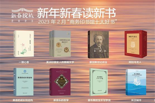 中新网北京2月9日电 (记者 应妮)商务印书馆“新年新春读新书·月度新书发布会”8日晚在线举办,发布了2023年2月“商务印书馆十大好书”,分别为《一瓣心香——叶嘉莹诗词论稿》《美洲印第安人的图画文字》《爱因斯坦论政治》《阿拉乌戈人》《社会形态与符号景观》《英语的成长和结构》《新音乐的哲学》《霍布斯的生平与学说》《环卫城市——从美国殖民地时期直到现在》《汉语新词语词典(2000-2020)》。