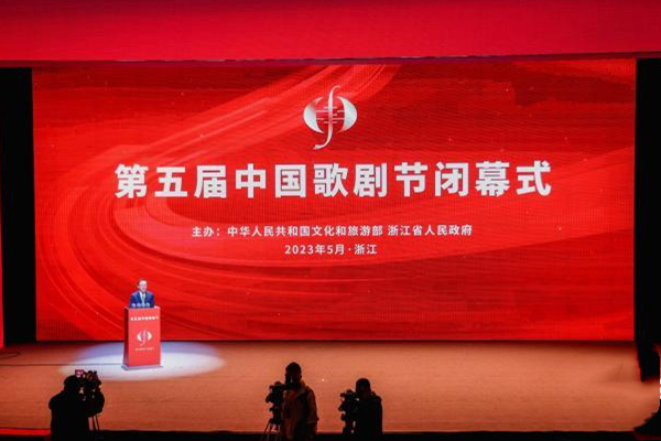 中新网杭州5月25日电 (王题题)5月24日晚,由文化和旅游部、浙江省人民政府主办,文化和旅游部艺术司、浙江省文化和旅游厅、嘉兴市人民政府、中国歌剧研究会承办,浙江演艺集团、嘉兴市秀洲区人民政府协办的第五届中国歌剧节闭幕式在浙江嘉兴举行。
