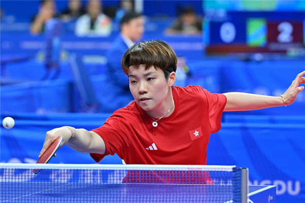 杜凯琴于乒乓女团比赛中。(中国香港大专体育协会图片)
