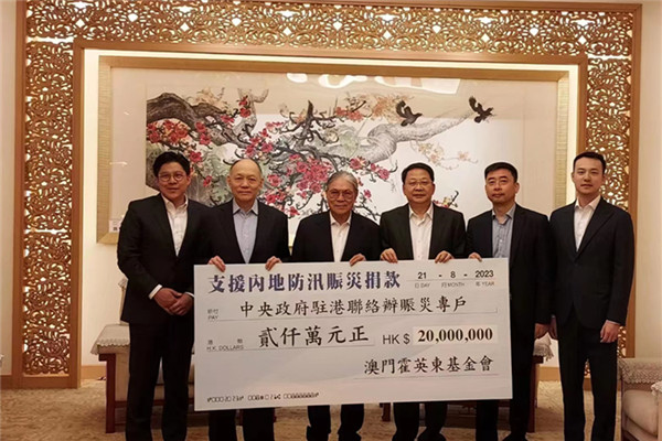 澳门霍英东基金会捐款2000万港元支援内地防汛抗洪救灾。