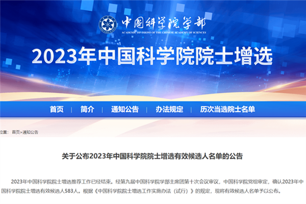 中国科学院、中国工程院2023年两院院士增选工作自5月底启动,今日正式公布增选有效候选人名单。中国科学院2023院士增选名额共79名,增选名额向国家急需的关键领域和基础学科、新兴学科、交叉学科等倾斜。中国工程院增选总名额为不超过90名,增选名额分配向国家急需的关键领域等倾斜,以促进领域学科间的平衡发展,满足国家战略需求。
