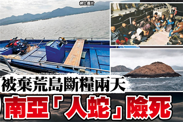 9名巴基斯坦籍非法入境者,被无良“蛇头”丢弃荒岛断水断粮两天险死,幸被途经渔民发现获救。警方一连两日在西贡薯茛洲荒岛及流浮山后海湾海面,合共截获19名非法入境者,以及一名涉嫌驾驶机动舢板协助偷渡的内地男“蛇头”。调查相信两批“人蛇”是以迂回路线,由巴基斯坦乘搭飞机到新疆乌鲁木齐后,再南下到深圳偷渡来港。