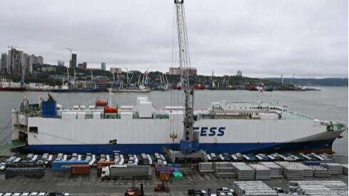 图为2023 年 8 月 25 日,俄罗斯符拉迪沃斯托克(海参崴)的一个商业港口,从船上卸下的中国新车。 REUTERS - TATIANA MEEL