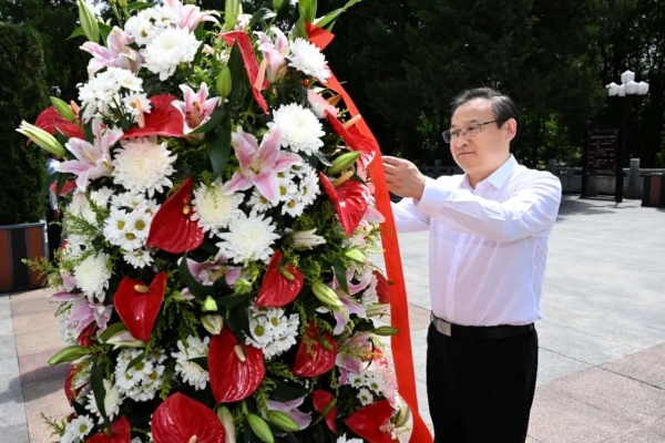 山山埋忠骨,岭岭树丰碑。巍峨耸立的革命烈士纪念塔,在苍松翠柏的映衬下,显得格外庄严肃穆。梁言顺、王清宪来到金寨县红军广场,沿着台阶缓步行至纪念塔前肃立,敬献花篮并深深鞠躬,表达对革命烈士的深切缅怀和无限敬仰。随后,梁言顺、王清宪绕行瞻仰烈士纪念塔,仔细察看基座上的碑文和浮雕,缅怀当年红军浴血奋战的峥嵘岁月。梁言顺动情地说,大别山老区人民以大无畏的牺牲精神和视死如归的坚定信念,为中国革命事业建立了彪炳史册的历史功勋。要沿着革命前辈的足迹继续前行,确保红色江山永不变色、代代相传。