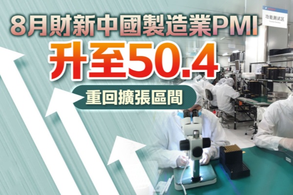 【点新闻报道】据财新网报道,9月2日公布的8月财新中国制造业採购经理指数(PMI)录得50.4,较7月回升0.6%,重回荣枯线以上。国家统计局此前公布的8月制造业PMI下降0.3%至49.1,与2024年2月并列为年内最低,连续四个月低于荣枯线。