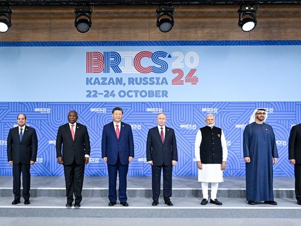 当地时间10月23日上午,金砖国家领导人第十六次会晤在喀山会展中心举行。俄罗斯总统普京主持会晤。中国国家主席习近平、巴西总统卢拉(线上)、埃及总统塞西、埃塞俄比亚总理阿比、印度总理莫迪、伊朗总统佩泽希齐扬、南非总统拉马福萨、阿联酋总统穆罕默德等出席。这是会晤期间,金砖国家领导人集体合影。新华社记者 李学仁 摄