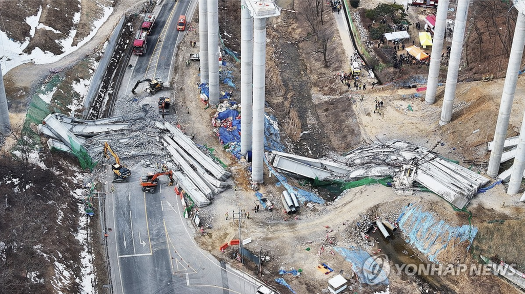 京畿道安城市在建桥梁坍塌事故现场。(韩联社)
