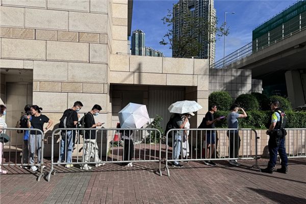 今早,西九龙裁判法院外保安措施显著加强,至少十多辆警车驻守戒备,数十名穿着防刺战术背心的警员在场巡逻,有警犬协助执勤搜索。同时,警方在法院外围设置警岗,对可疑车辆进行搜查,确保没有危险物品。
