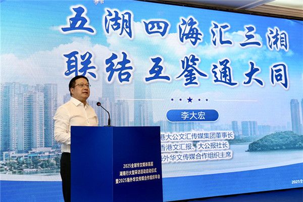 李大宏表示,今年是中国人民抗日战争暨世界反法西斯战争胜利80周年,民族危亡之际,海外华媒不畏危难,将中国抗战的消息带到世界各地,讲述着中华民族不甘屈服的抗战精神,如今我们接过历史的接力棒,仍要赓续守护红色记忆、传递抗战精神的使命,要用更鲜活的叙事、更创新的形式,让年轻一代读懂历史、铭记初心,把中国尊重历史、珍爱和平的态度传递给世界。他表示,大文集团与海外华文传媒合作组织愿以此次湖南年会为新起点,与湖南深度交流合作、常来常往,共同推动文明传播与交流互鉴,让每一条湖南声音、中国故事都能跨越山海、永续回响。