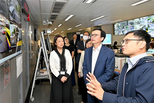 运输及物流局署理局长廖振新在运输署署长李颂恩陪同下视察协调中心,并得欣悉铁路、巴士及渡轮均正常服务,学校区特别路线亦已恢复服务,跨境学生来港上学情况亦大致畅顺,公共运输服务基本能满足乘客需求。