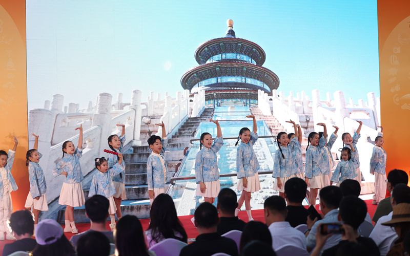 文化戏剧荟开幕式上,中轴晨光童声合唱团演唱《北京中轴线 正好你出现》。新京报记者 王贵彬 摄