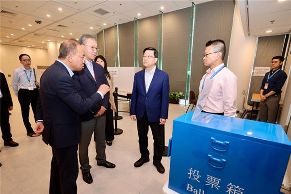 李家超6日到访位于香港中央图书馆的一般投票站。