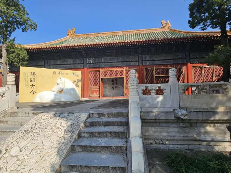正在故宫博物院大高玄殿数字馆展出的“腾跃古今——马文化数字艺术展”。商重明/摄。