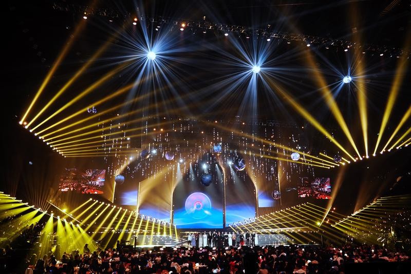 这是9月28日拍摄的晚会现场。图片来源:新华社