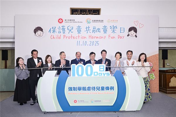 主礼嘉宾在医务卫生局副局长范婉雯医生、儿童事务委员会保护儿童工作小组召集人钟丽金、副召集人利哲宏博士和黄翠玲,以及儿童事务委员会宣传及公众参与工作小组召集人黄梓谦和副召集人李婉心陪同下,一同主持倒数仪式,标志着《条例》距离明年1月生效进入100日倒数阶段的里程碑。