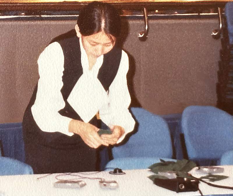 1995年,24岁的吕毅红正在联合国第四次世界妇女大会会场服务。受访者供图