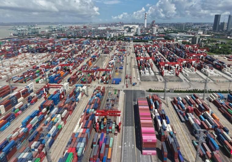 9月中国对美国出口同比下降,对欧盟和亚细安出口则取得增长。图为10月13日停放在上海港口的集装箱。(法新社)
