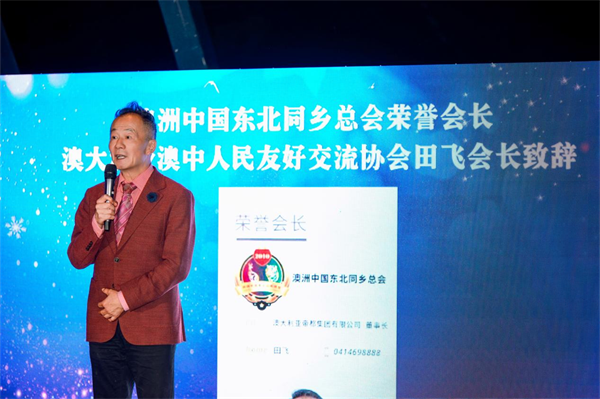 澳中人民友好交流协会会长田飞作为友好社团代表发言,他表示:“东北同乡总会不仅凝聚了同根同源的乡情,更传递了海外华人团结互助的精神,这份精神是侨社最宝贵的财富。”