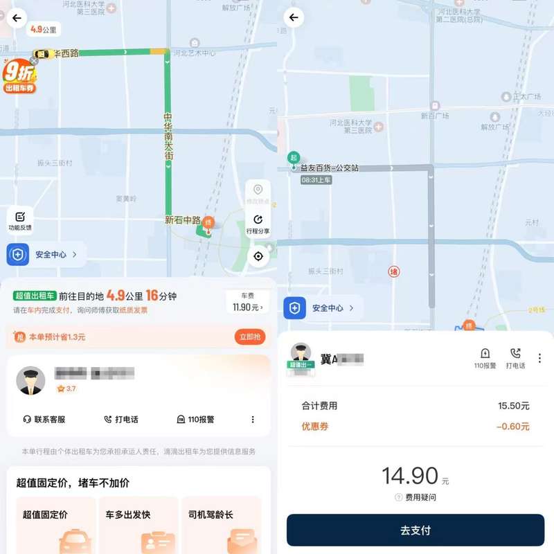 ▲崔先生的行程显示车费为11.9元,支付时变成了14.9元。图/澎湃新闻