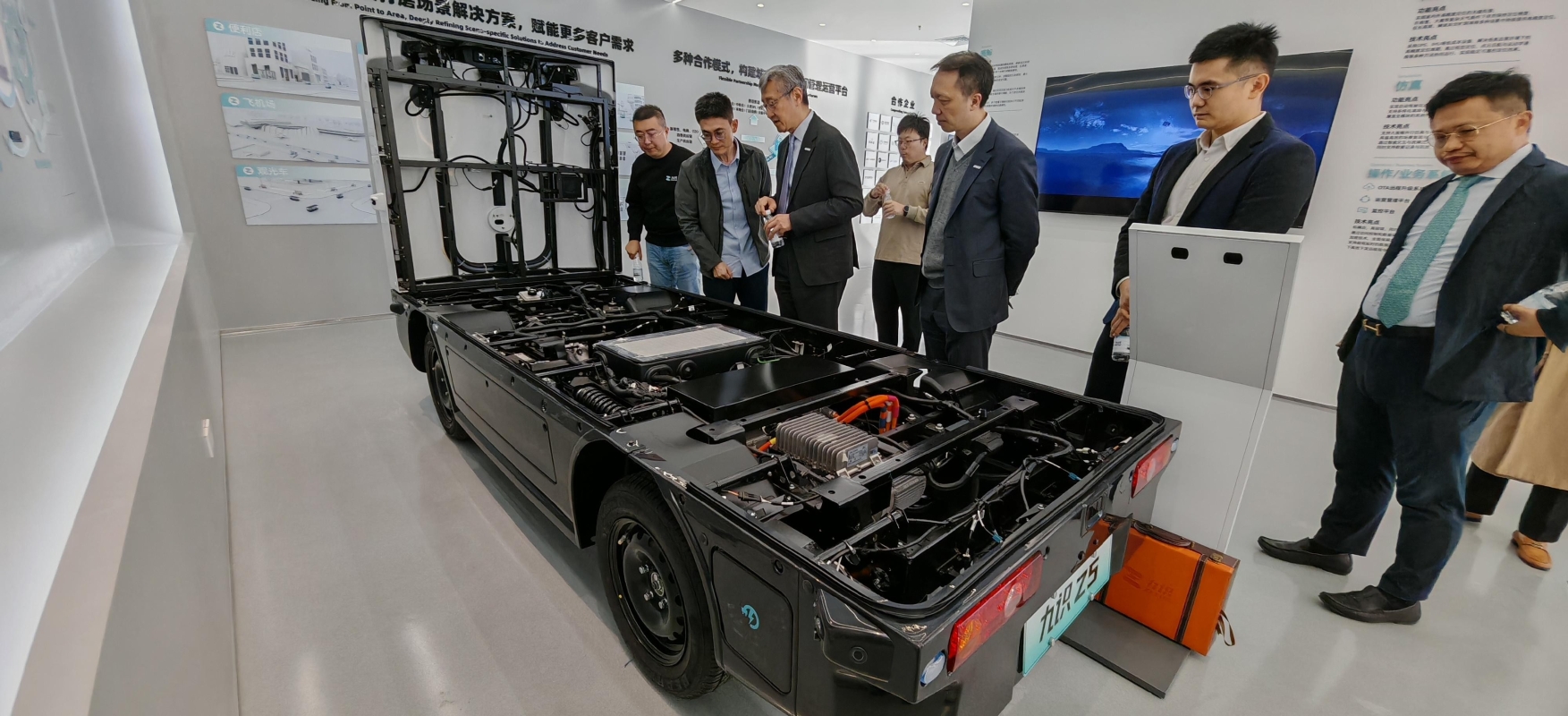任景信(左三)及引进办执行总裁彭文俊(右三)到访一家专注研发高度自动驾驶技术的企业。
