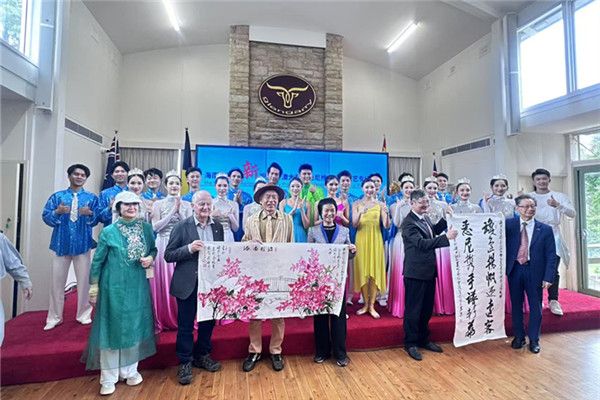 活动期间,海南艺术团与当地文艺团体联袂奉献了一场中澳艺术融合的盛宴。由澳洲国际儿童妇女联合会主席钟颖组织创作的少儿诗朗诵《从海南到南半球:和平之海、友谊之光》,歌颂了二战期间海南人民与澳大利亚“海鸥支队”士兵用生命铸就的深厚情谊。76岁的国际艺术大师熊大蒂现场以中澳国旗色彩编织《中澳友谊同心结》,寄寓对两国友谊的美好祝愿。