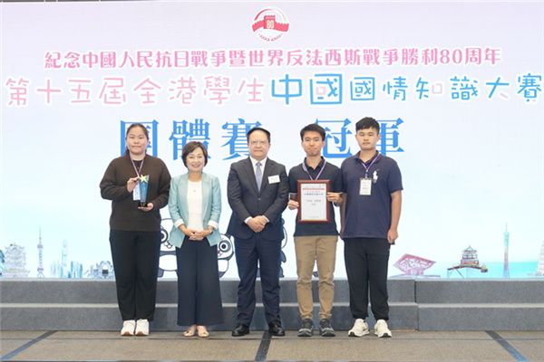 (大公报记者 李慧妍、邱梓茵)“第十五届全港学生中国国情知识大赛”决赛暨颁奖典礼11月2日于香港会展中心举行。本届大赛以中国人民抗日战争暨世界反法西斯战争胜利80周年为主题,旨在促进全港学生铭记历史、珍惜和平,立志成为担当民族复兴大任的时代新人。