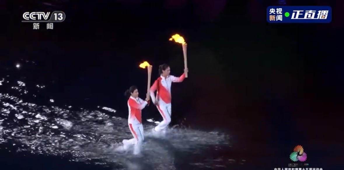十五运会开幕式9日晚在广州举行,主火炬点燃仪式开始,火炬手逐一亮相,其中跳水奥运四冠运动员郭晶晶现身时,全场沸腾。火炬手还有不少来自香港的运动员,包括三届全运会单车金牌黄金宝、点燃主火炬的香港击剑运动员张家朗。