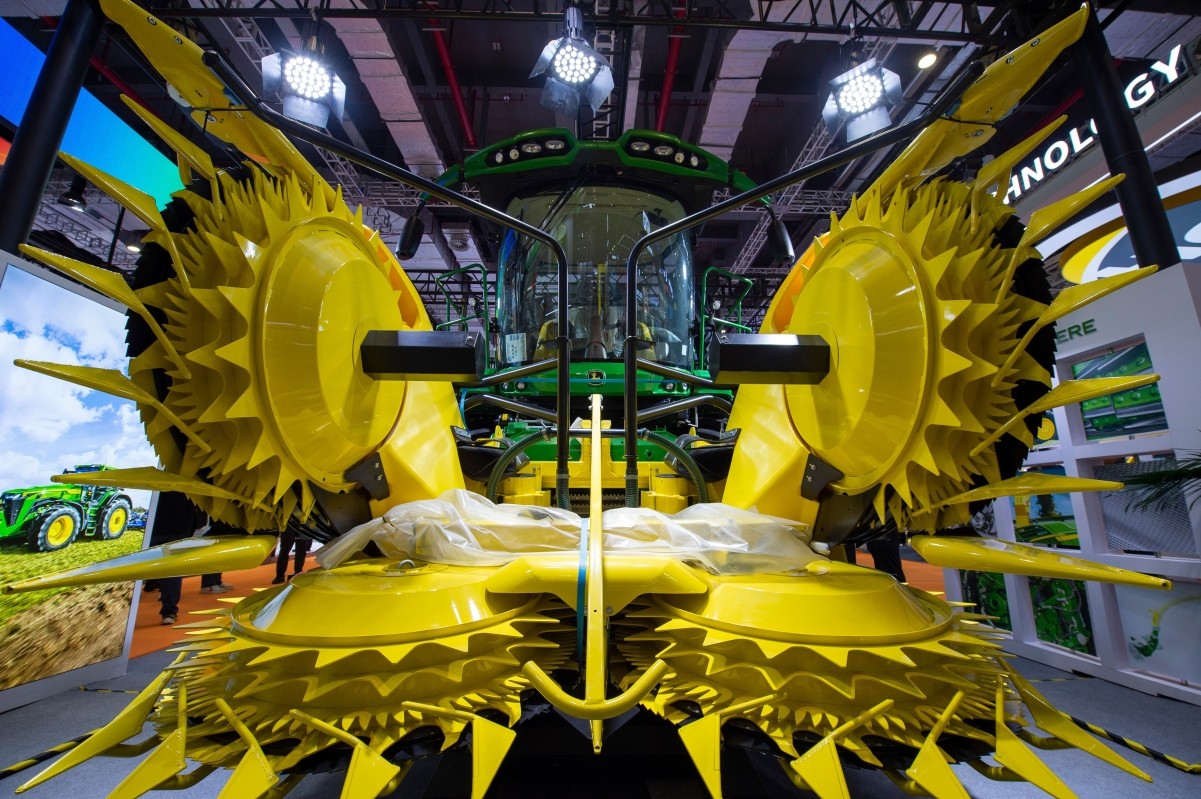 图为第八届进博会技术装备展区中的自走式青贮收获机 图片来源:新华社