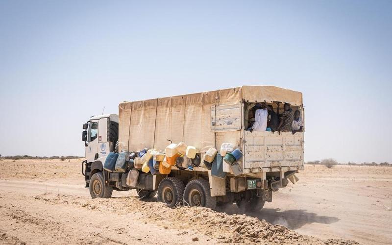 ▲6月26日,苏丹难民转运卡车由乍得东部城市蒂内开往伊里迪米。图/新华社