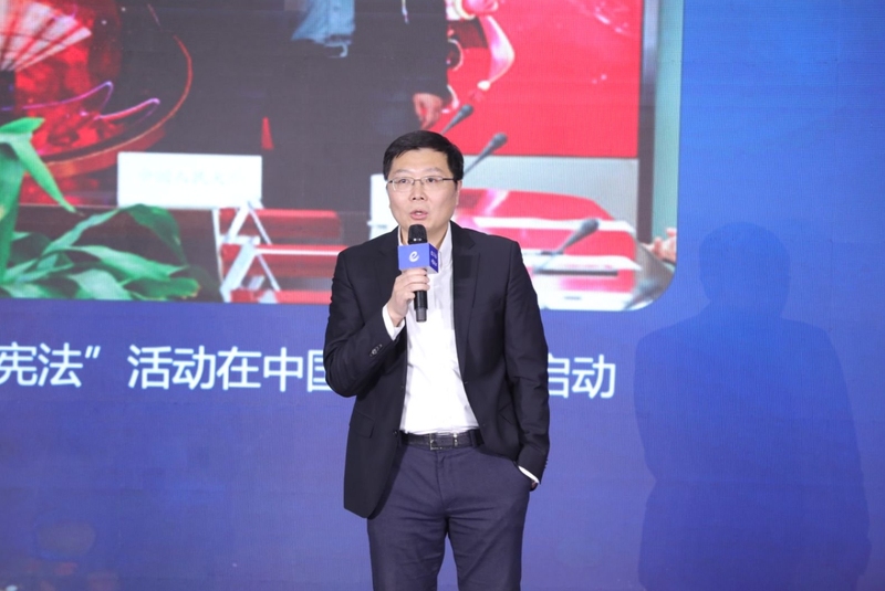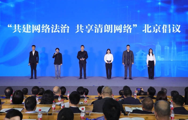 “首都网络普法联盟”成员代表共同发布“共建网络法治 共享清朗网络”北京倡议。主办方供图