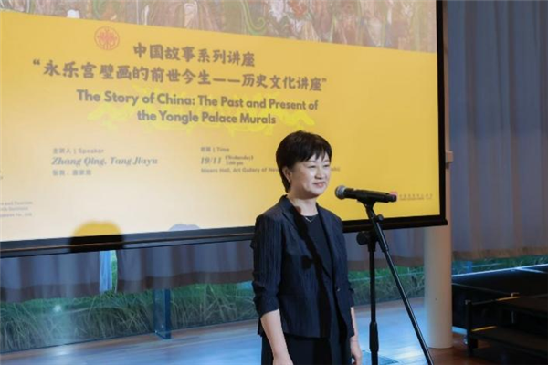 运城市副市长张锐表示,永乐宫壁画是河东文化的璀璨明珠,以其恢宏规制、精湛技艺与绚丽色彩享誉世界,被誉为“东方艺术宝库的典范”。近年来,运城市政府设立专项资金,组建专业团队,积极拓展传播途径,并通过举办国际交流活动,推动永乐宫壁画走出宫墙、走向世界。她相信本次讲座会让更多国际友人领略永乐宫壁画的艺术魅力,感受河东大地深厚的文化底蕴。
