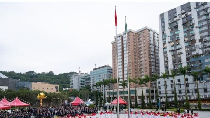 招待酒会前,特区政府早上8时在金莲花广场举行庆祝中华人民共和国澳门特别行政区成立26周年升旗仪式。(完)