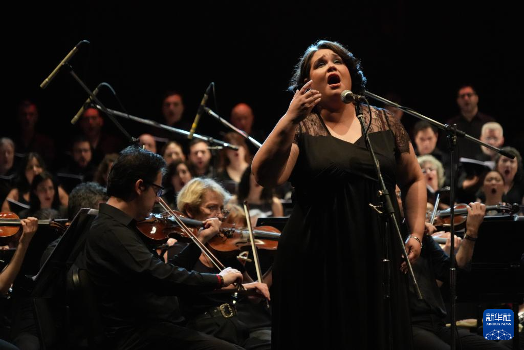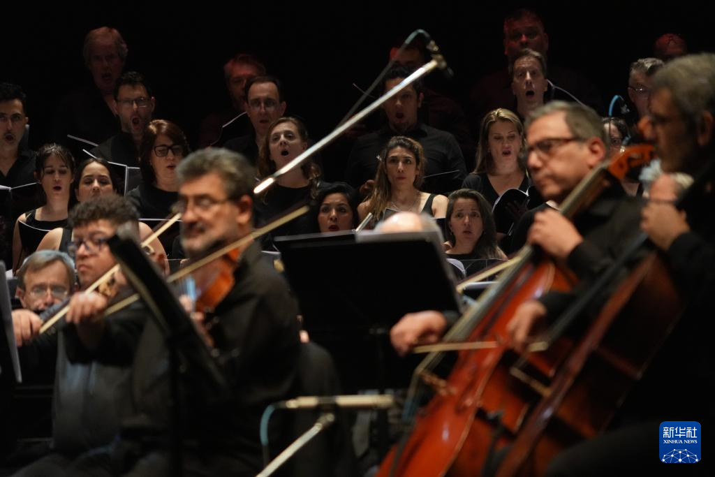 12月20日,在阿根廷首都布宜诺斯艾利斯,科隆剧院管弦乐团与合唱团的艺术家在百年庆典音乐会上表演。