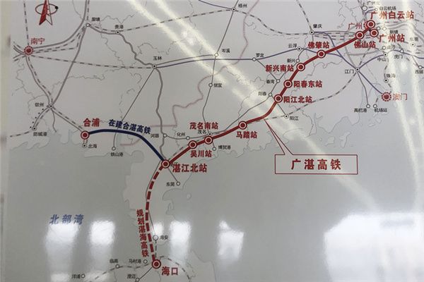 广湛高铁在湛江北站与规划建设的湛江至海口高铁相连接。图为线路示意图。(大公文汇网记者方俊明 摄)
