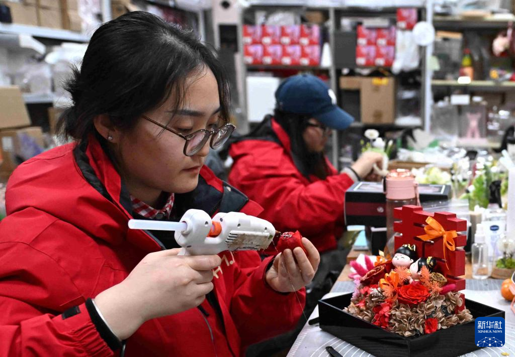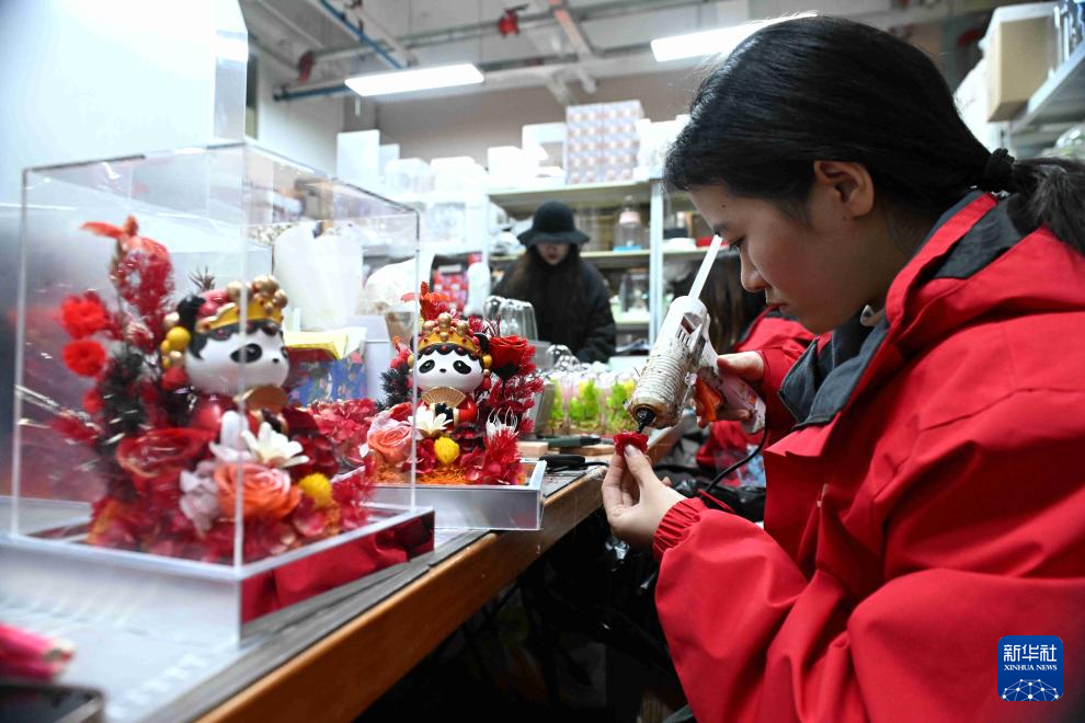 12月22日,在河北省石家庄市那些花儿文化旅游产业示范基地,工艺师制作文创产品。